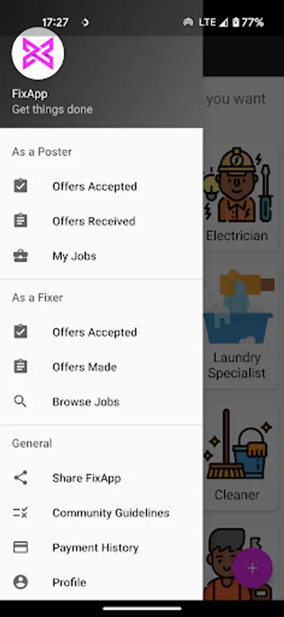 FixApp is a market place that connects people with outsource-able tasks like plumbing, gardening, carpentry etc to individuals, handymen, companies that are capable of completing those tasks for a fee.