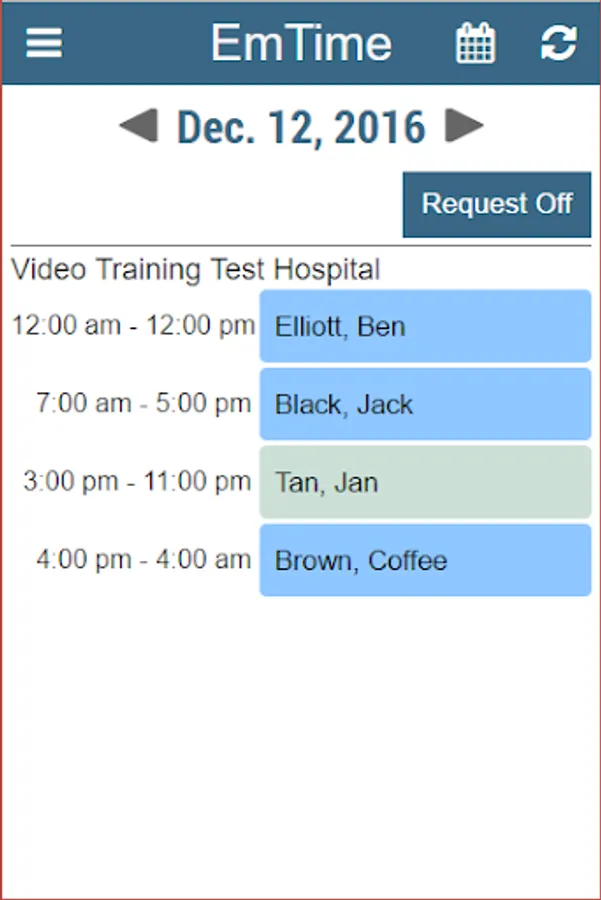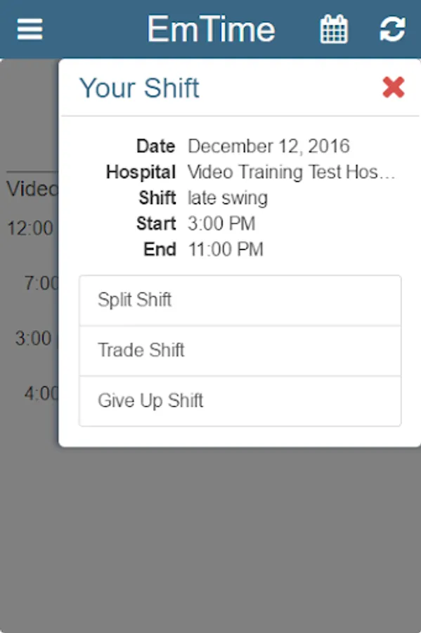 Mobile version of EmTime scheduling application for healthcare providers.