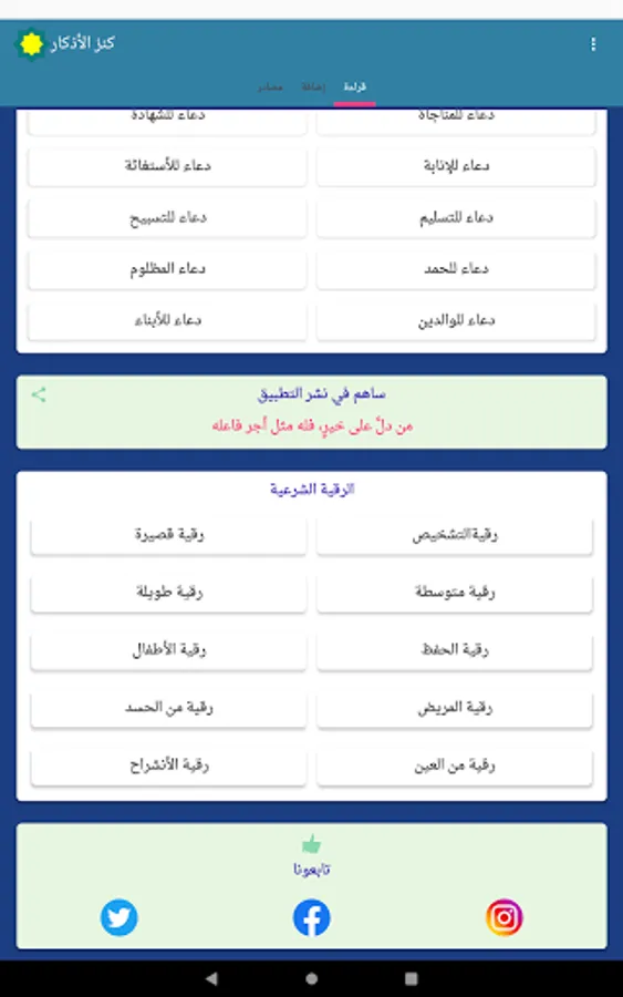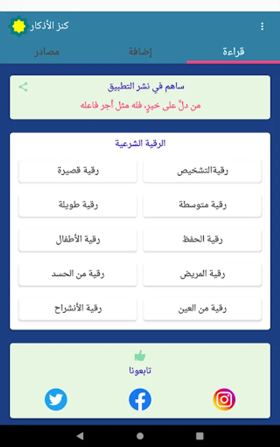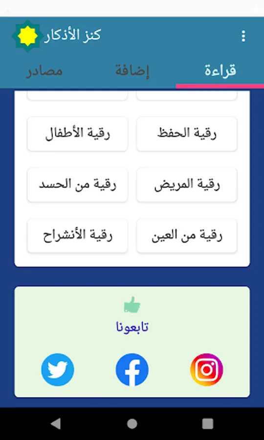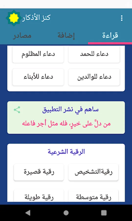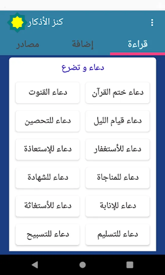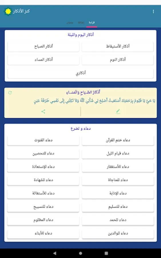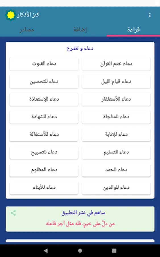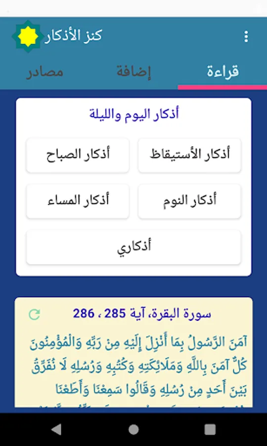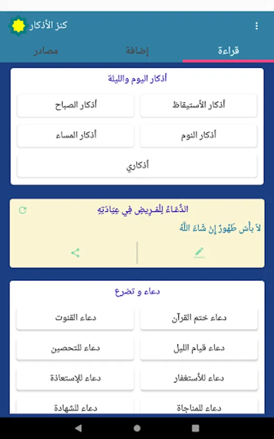 Kanzulazkar includes tens of azkar from Quran and Sunnah. The app includes Hisnul Muslim book. In addition, it includes douaa from Quran and by righteous people. KanzulAzkar allows users to add their own zikr and classify them using the existing categories or add new categories of alazkar.