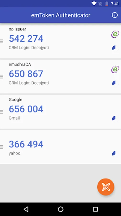 emToken Authenticator generates 2-Step Verification codes on your phone.