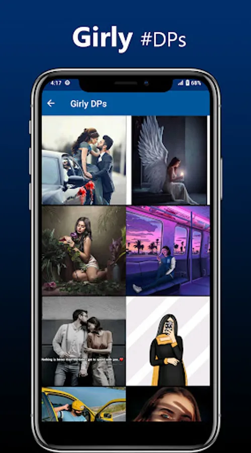 Get the trending DP and most liked DPs by this app. Category Wise DP's are added in app. We tried our best to collect Latest DP for whatsapp and fb as well as new DPs are added regularly. Motivational DP pics are also added for motivation and inspiration. We also add Romantic and Lovely DP for Couple. Funny DPs are also introduced for you to make you Smile. Some Attitude DP are also added so you can show your Attitude and believe in yourself as well as Sad Dp collection is also added for our sad users to show your sad mood in style. Fantasy DPs are also added.