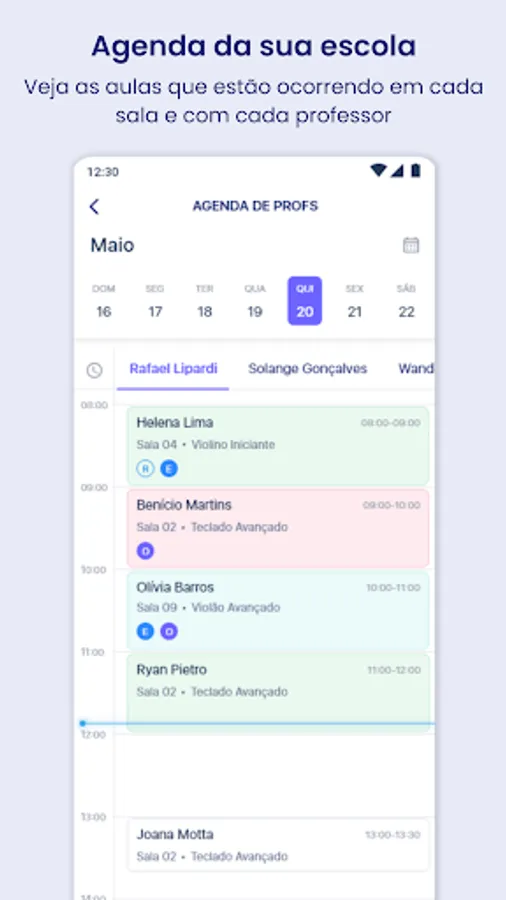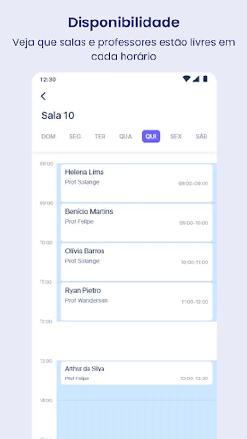 - Your school's schedule: See the classes that are taking place in each room and with each teacher.