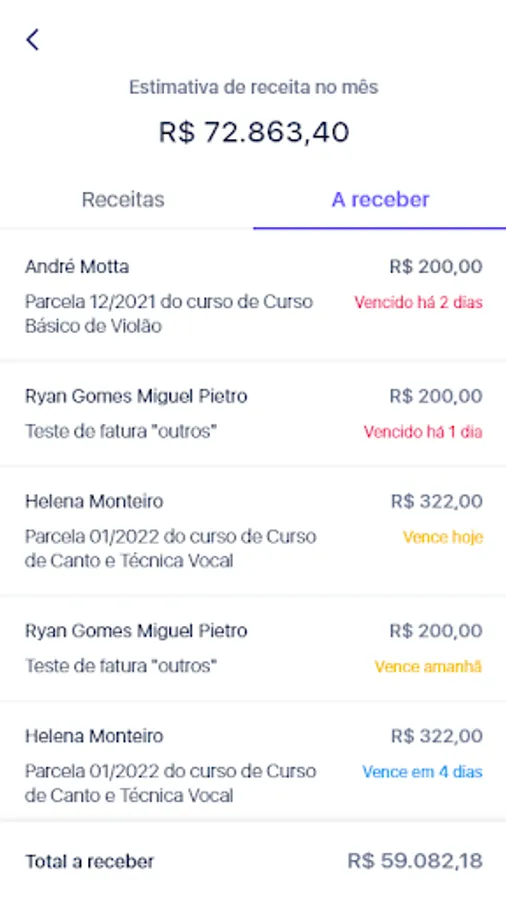 - Accounts receivable: See everything that has been received this month, what is overdue and what is still to be received.