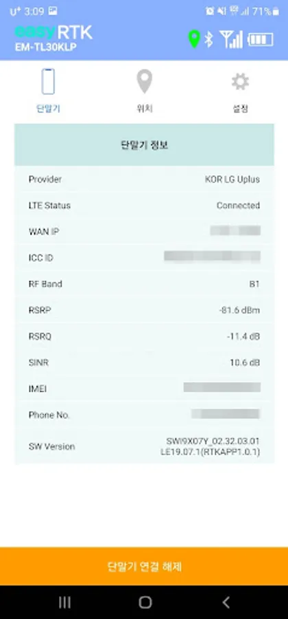Provides LTE network status information of RTK devices