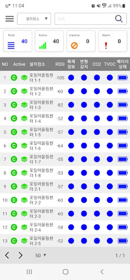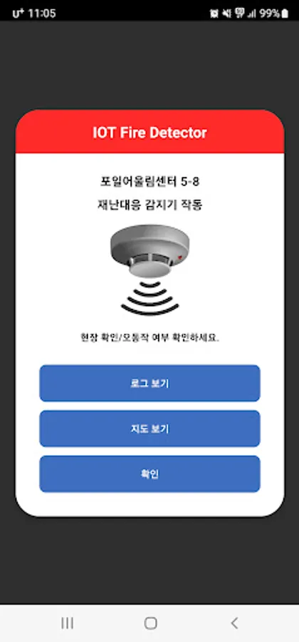 2) Sensor information displays fire alarm, deformation detection, Co2, TVOC, and battery information.