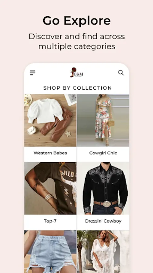 Our user-friendly app ensures a seamless shopping experience. Browse effortlessly through our diverse range of clothing options, discover new arrivals, and find the perfect pieces that reflect your unique style. With E&M Western Couture, you can easily elevate your wardrobe and embrace the fashion you love.