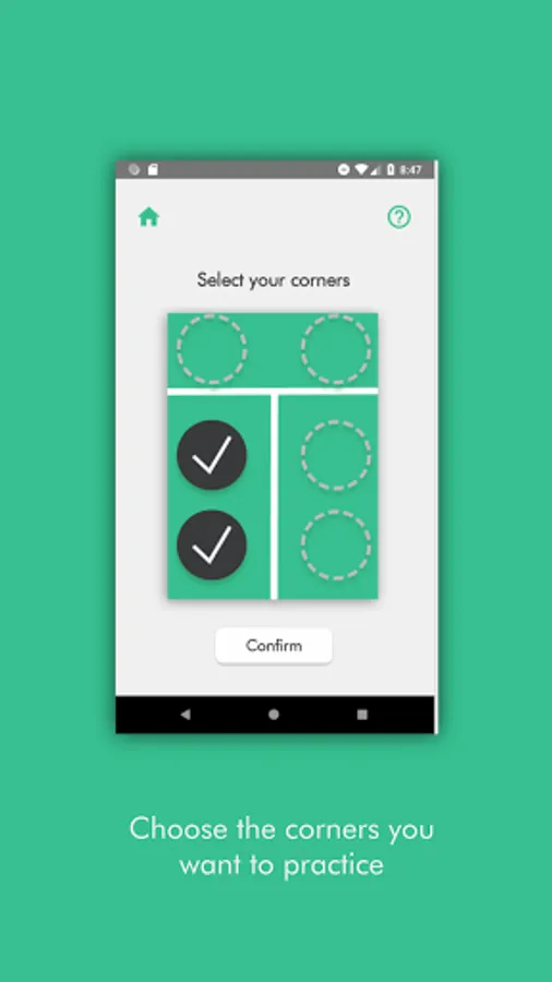 🏸 Select the corners you want to practice by checking the corresponding circles.