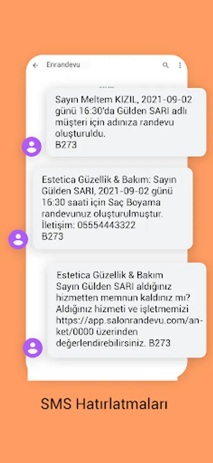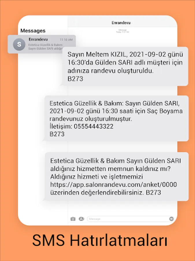 Enrandevu, where simplicity meets power, provides businesses with the opportunity to check and access all their appointments from a single place. As a free member, you can make an appointment and view your appointments from anywhere via the application. While Enrandevu provides the opportunity to make automatic plans 24/7, to access and organize your customer information, it also facilitates your time management. While Enrandevu enables member businesses to reach more people, it also enables users to make appointments more easily with the services available to them. Appointment reminder, send SMS messages, appointments will not be forgotten.