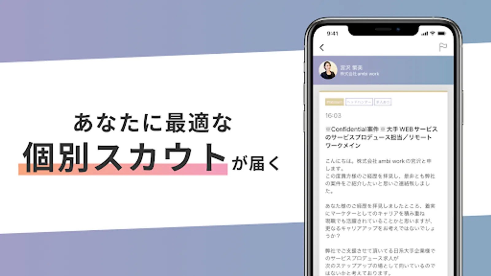 AMBI is a career change site for young high careers. You will receive a scout that is perfect for you from excellent companies and agents.