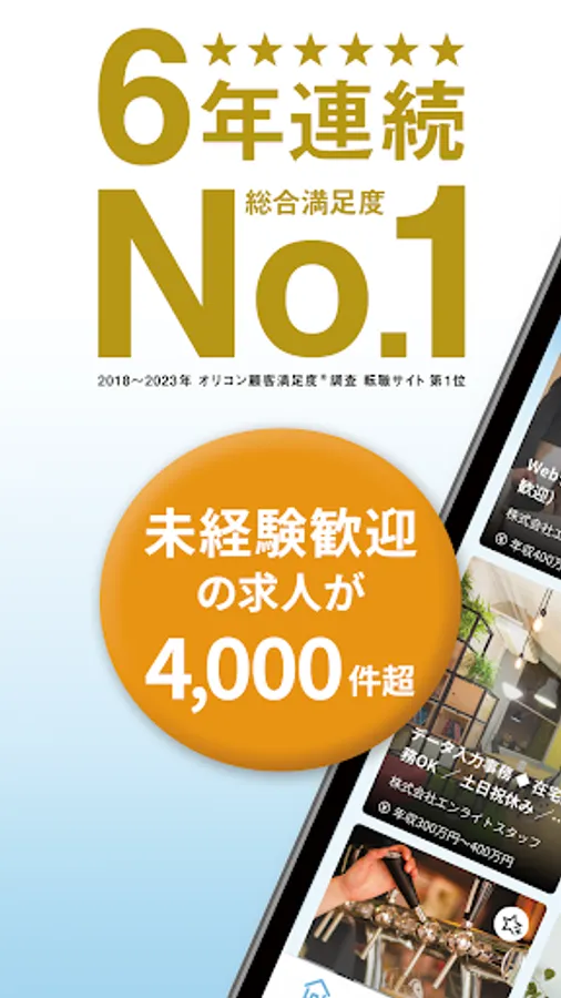 Oricon Customer Satisfaction Ranking 2018-2023 \ No. 1 career change site for 6 consecutive years! /