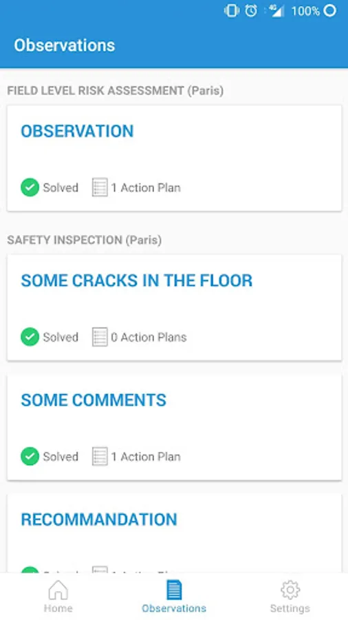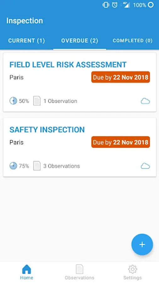 • Access observations and key inspection information including scope, due date, and progress.