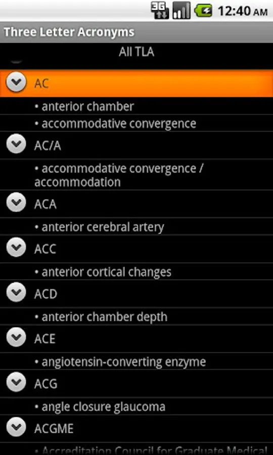 This application provides common and uncommon acronyms and initialisms used by ophthalmologists. Look up the (sometimes multiple) definitions for each acronym. Included are acronyms and initialisms from general ophthalmology, glaucoma, oculoplastics, genetics, retina, neuroophthalmology, cornea, and pediatric ophthalmology.