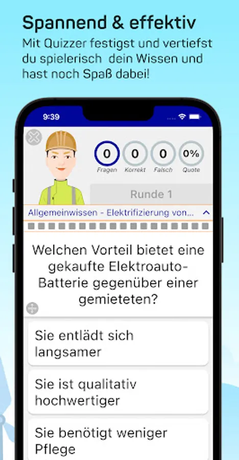 With the EnBW quiz app, you can build up exciting knowledge by playing alone or challenging colleagues from the EnBW Group to a playful duel. The more you play, the more awards you get and the better your place in the leaderboards! The EnBW quiz app is a voluntary offer for all trainees, dual students and the training team.