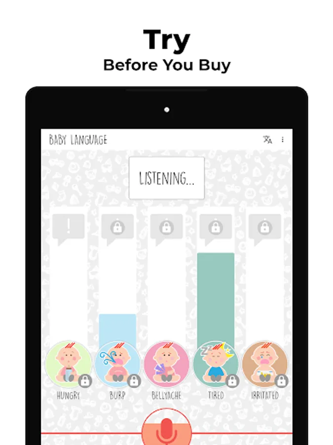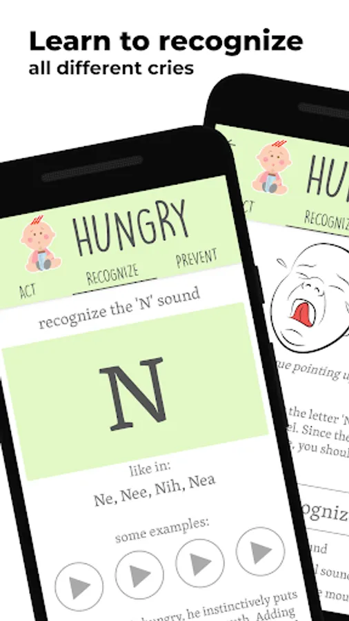 The Baby Language app has a tool that recognizes and translates your baby cries into understandable language, and it teaches you how to master this skill yourself. The app also gives you many ways how to handle each specific cry, and finally the app contains lots of tips and tricks to prevent or reduce any specific baby cry.