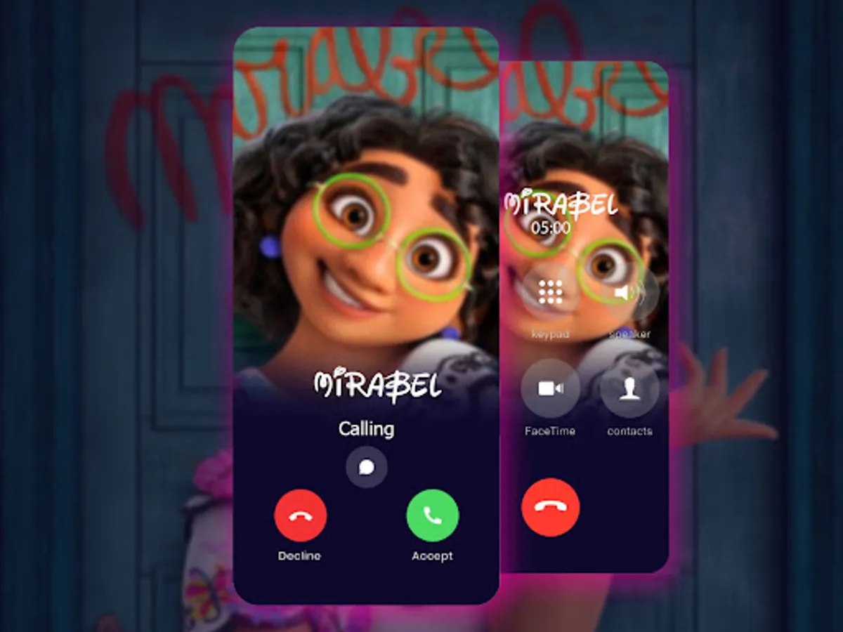 If you like chat cat with Mirabel and, Now this app fake call Mirabel from Disney's “Encanto” can you prank your freinds, and make a wonderful surprise to your family, you have a list of contacts can you make calling voice or live chat video with many charaters toys with his number phone like call marinnet or cat noire and his super kwams hero.