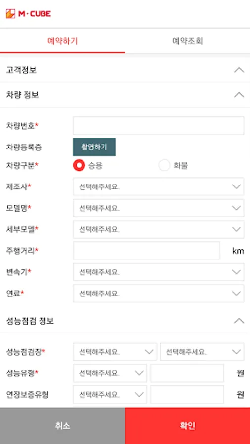 Without having to apply for a performance hall with a car registration card, enter the vehicle information at M Cube Reservation