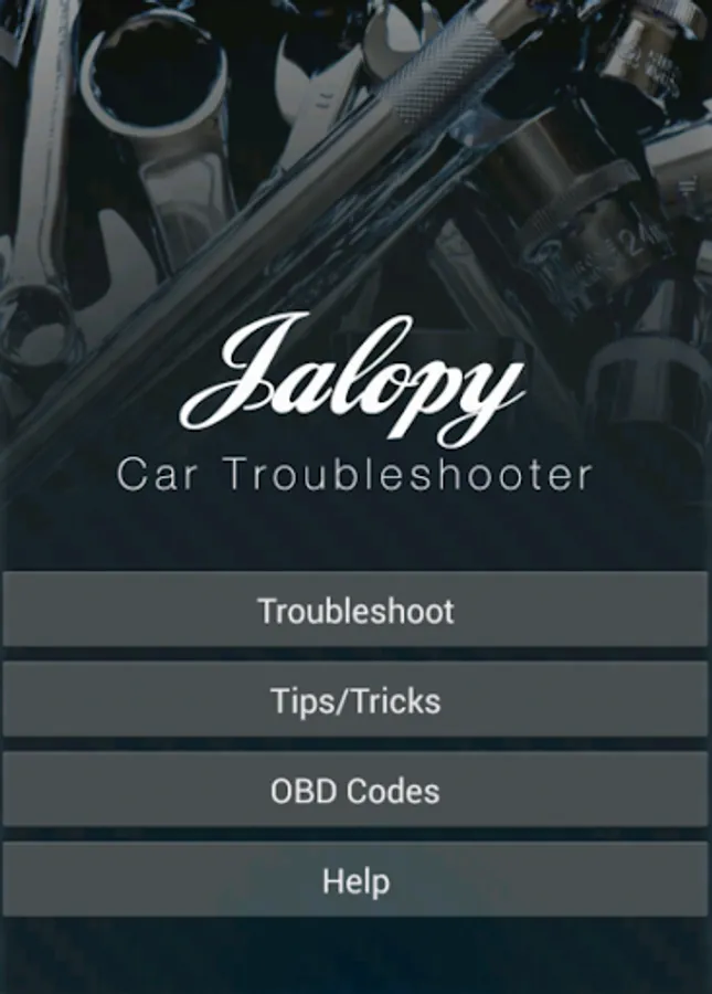 Jalopy is a car troubleshooting app designed to take you step-by-step through typical car problems. It will offer advice on how to fix and estimate how difficult the problem will be to resolve.