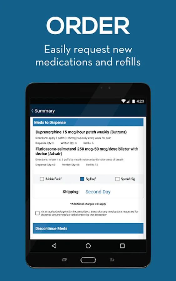 • New medications and refills can be placed through the mobile app, virtually eliminating the need to pick up the phone and contact a pharmacy to order and dispense medications