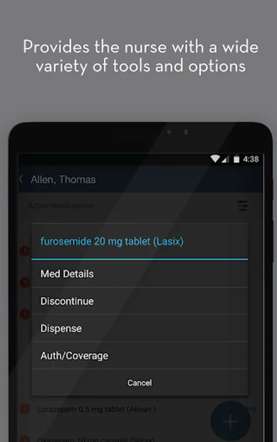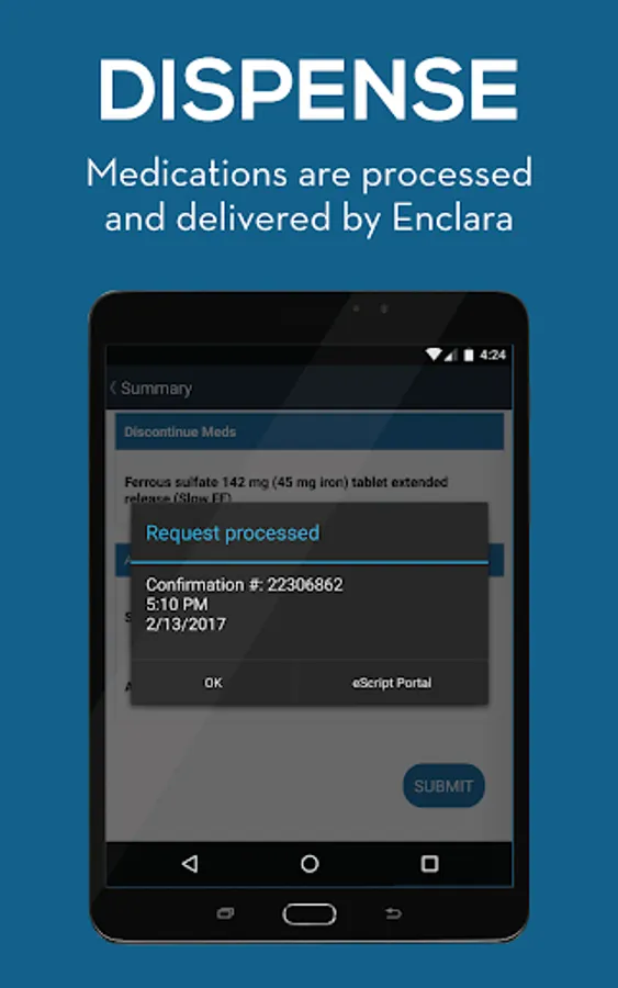 • Enables nurses to order medications on behalf of prescribers through a smartphone or tablet device