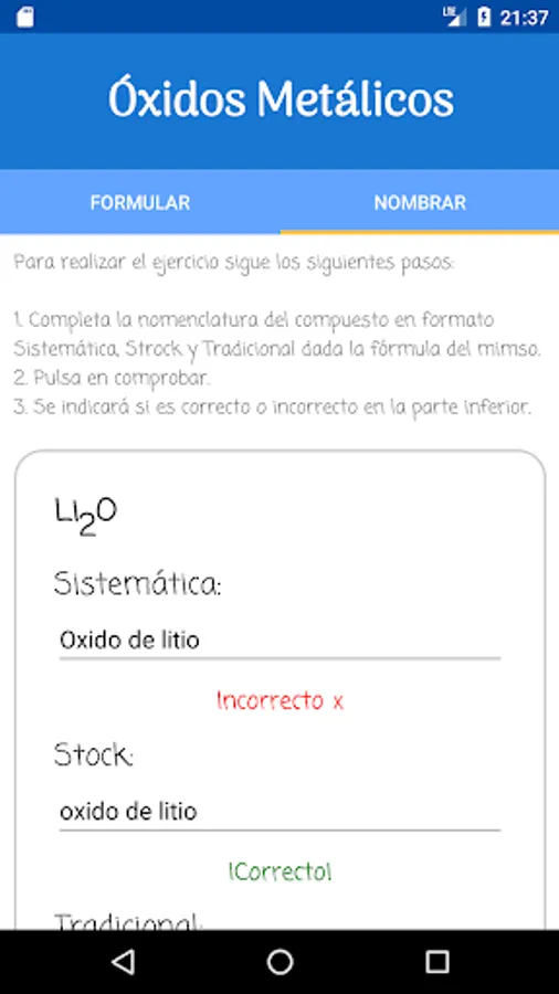 Chemical Formulation Lite is the free version of the Chemical Formulation application, it is a useful application for studying the nomenclature of Inorganic Chemistry.
