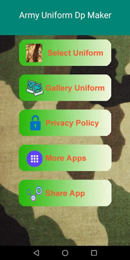 Army Uniform Dp Maker is free android download application. Many people mostly used to love their army suit, army dress, army service uniform, military suit and Pak army uniform and they want to use them in any way, so this app is especially for those people who love Pakistan army suit, army dress, army service uniform, military suit and Pak army uniform.