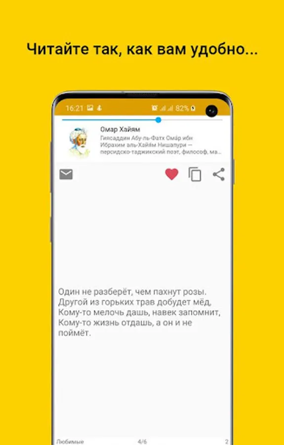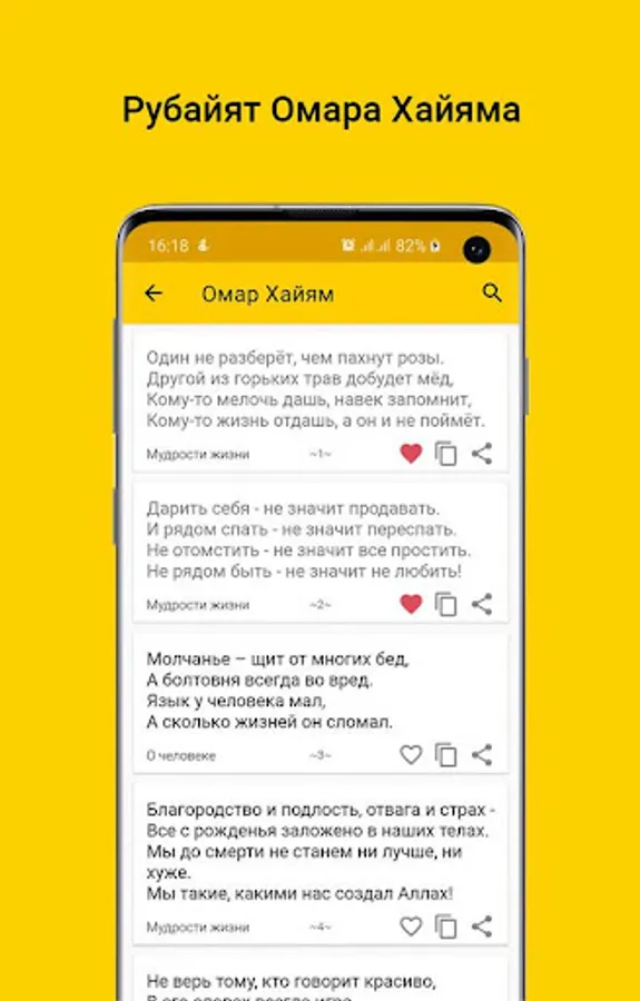 The best electronic collection with a convenient and pleasant design combining rubyi , quotes , aphorisms and poems combining the beauty of the word and the main values of the eastern sages: a deep understanding of the laws of life, a philosophical attitude to pressing problems and the desire for harmony with the world and ourselves.