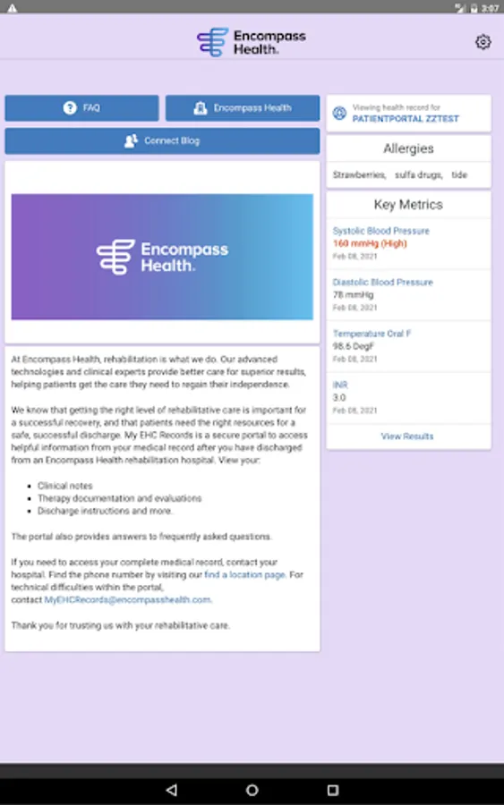 MyEHC Records, Encompass Health’s patient portal, provides quick and easy access to clinical information associated with your Encompass Health rehabilitation services. Powered by HealtheLife, MyEHC Records allows you to access: