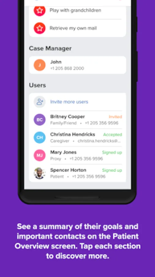 Information in the app is regularly updated by our care teams based on the individual care plan for the patient.