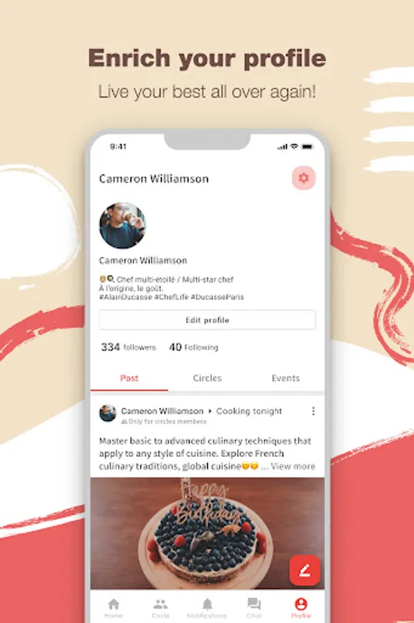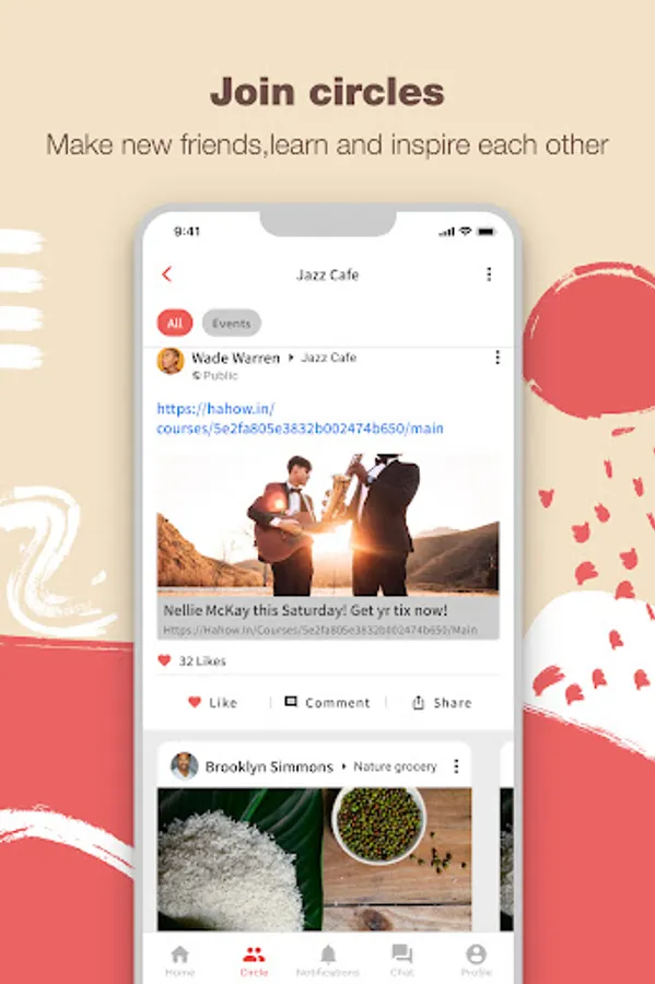 - Choose social circles to join based on your interests