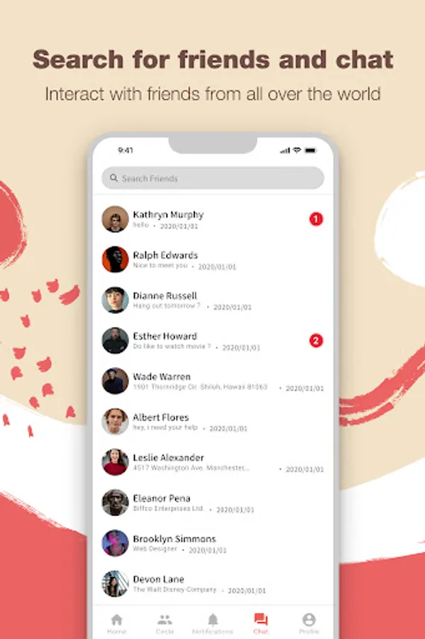 - Search for friends and chat