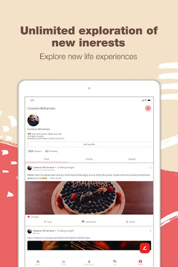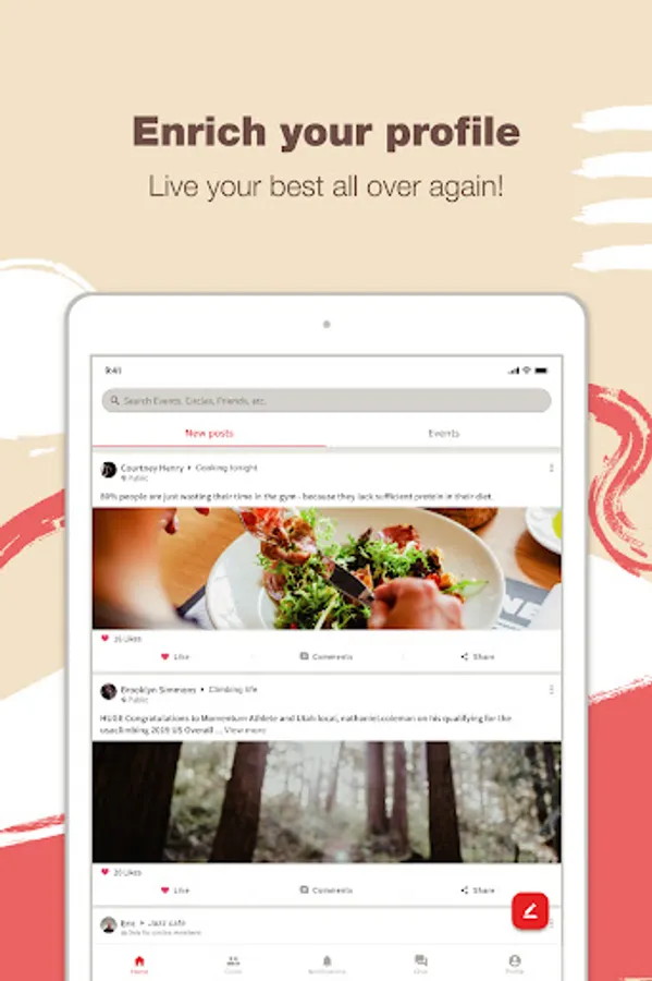 - Complete post, club, and event pages to build your personal brand