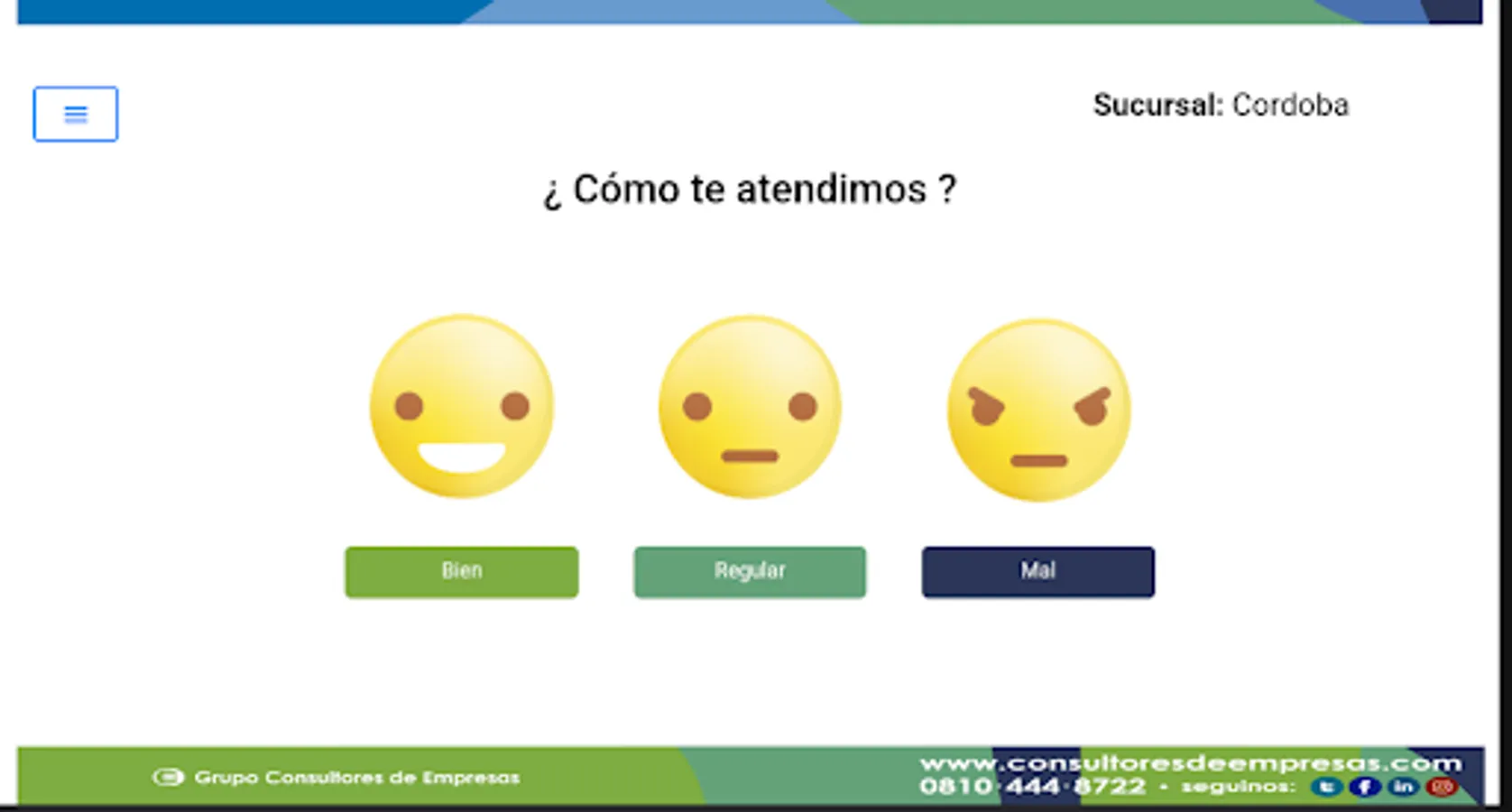 Survey app aimed at obtaining the level of satisfaction of the people who enter or work in each branch