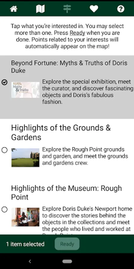 Rough Point Museum tours: Use the interactive app to find out more about the rooms, collections, and people of Rough Point, the Newport home of Doris Duke. Watch behind-the-scenes videos related to the caretaking of the collections, virtually step inside spaces not on the tour path, and encounter special object highlights.