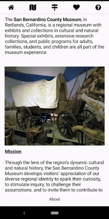 You do not have to be visiting the museum to use the mobile app. Download the app and begin discovering the San Bernardino County Museum from the comfort of your living room.