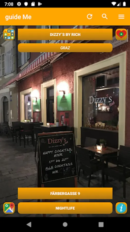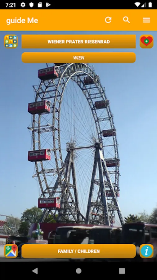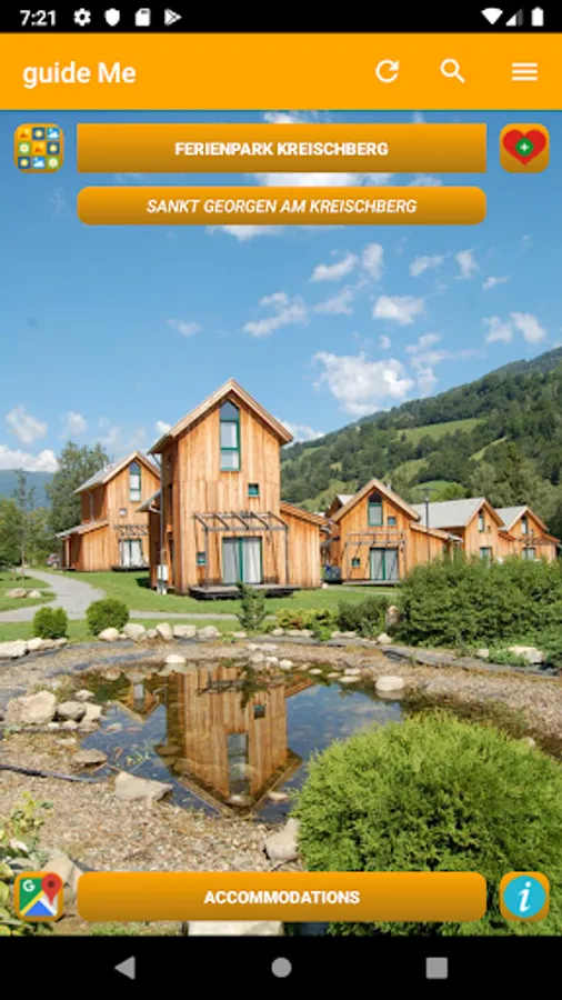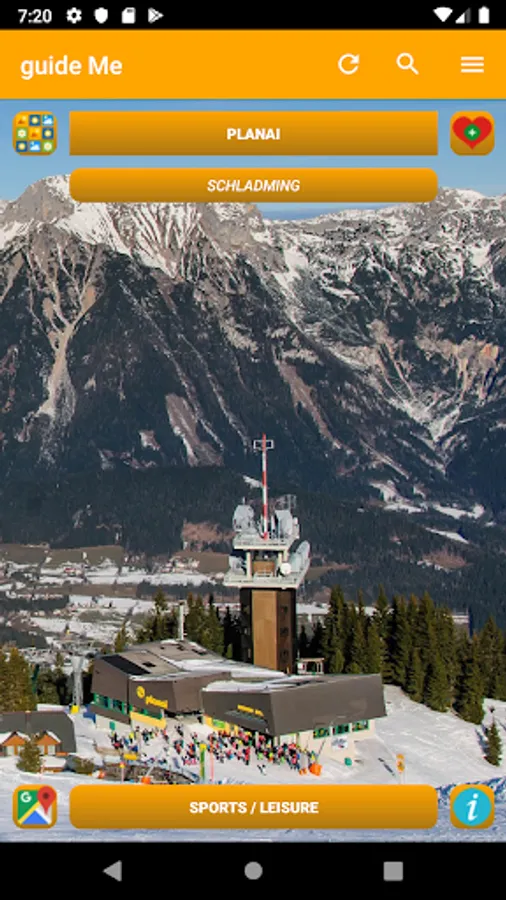 guide Me Austria will automatically show you the next 50 important POIs (Points Of Interest)in your area after launching the app.