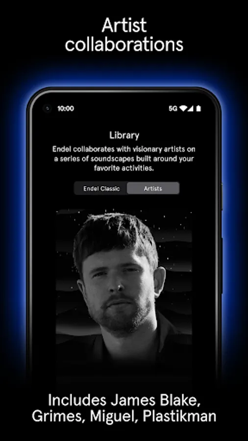 Alongside the much-loved Endel classics, Endel works with innovative artists and thinkers to create original experiences. Grimes, Miguel, Alan Watts, and Richie Hawtin aka Plastikman have all contributed to the growing catalog of soundscapes –– with more on the way.