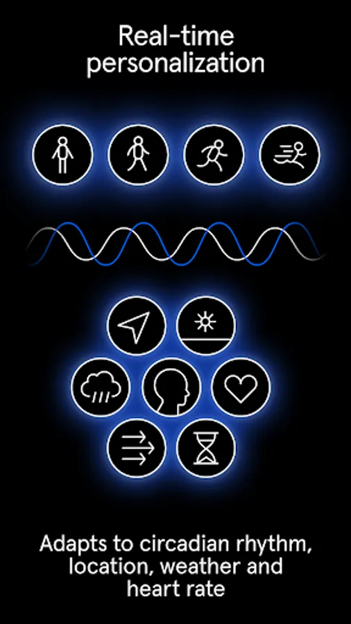 Endel is powered by its patented core AI technology. It takes inputs like location, environment, and heart rate, to create the optimal personalized soundscape. This happens on the fly and allows Endel to reconnect your state with your circadian rhythm