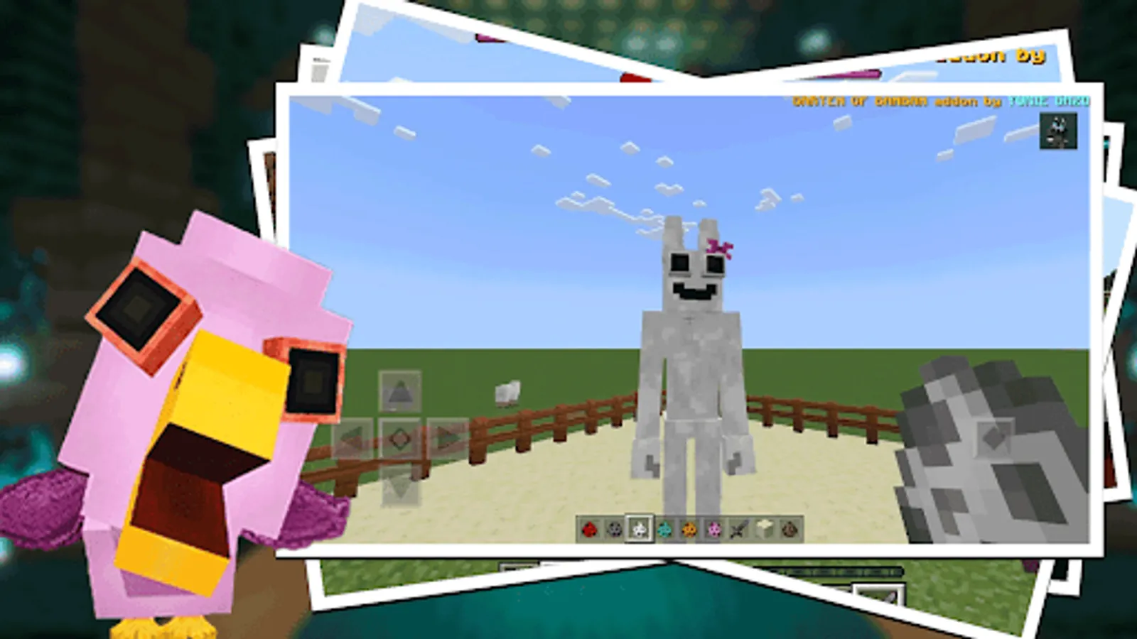 When you activate the garten of banban for mcpe you will meet colorful monsters, don't get caught by the monsters from the garden of banban minecraft. If you are caught in the garden of banban addon then you will be killed and respawn from the beginning. Prove that you can run from the chase of this skin garten of banban for mcpe.
