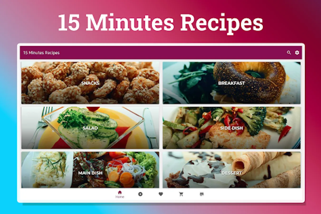 15 minutes free recipe app provides you the best collection of healthy recipes. We always need delicious recipes which can be prepared in a short span of time. People who are going to job in the morning, bachelors and students can take advantage of this cookbook. All recipes are delicious and easy to make. Get your meal on the table in no time flat. We provide you the best collection of breakfast recipes, snacks, salad, sandwich, burger, egg, finger foods and more with step by step directions for cooking. This flavorful recipes comes together in just fifteen minutes and combines a ton of nutrients for a well-balanced food. You can surprise your guests with these quick recipes.