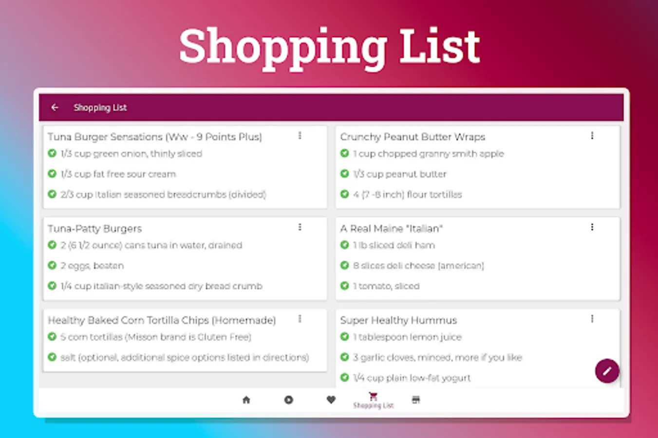 15 minute recipes app let you manage all your favorite recipes and shopping list offline.