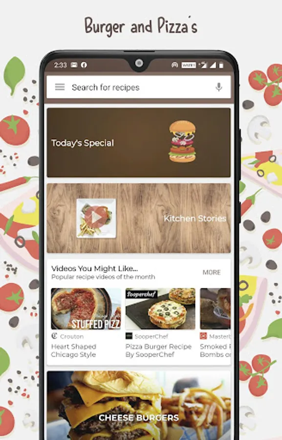 You can search and find thousands of recipe videos that help you to cook delicious burgers and pizza with step by step video instructions.