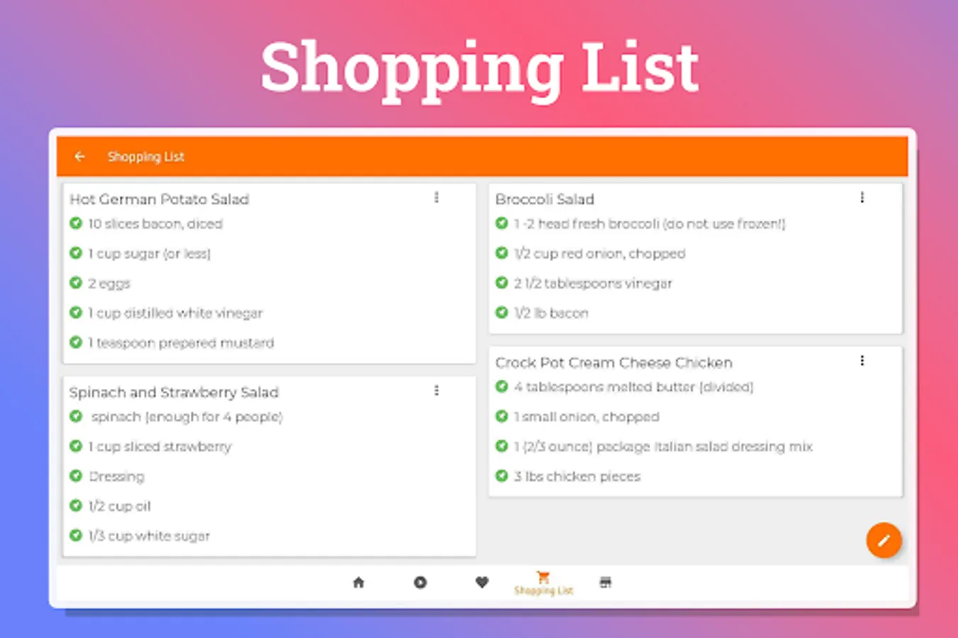 This Cookbook app lets you manage all your favorite recipes and shopping list offline.
