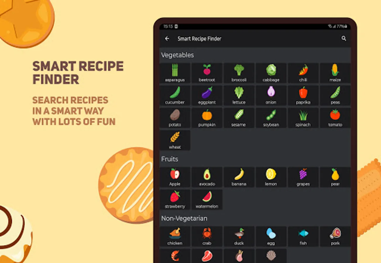 Make recipe-hunting faster by using the kitchen store feature! You can add up to five ingredients in the basket. Once you are done, hit "Find Recipes," and you will have a tasty cookie in front of you!