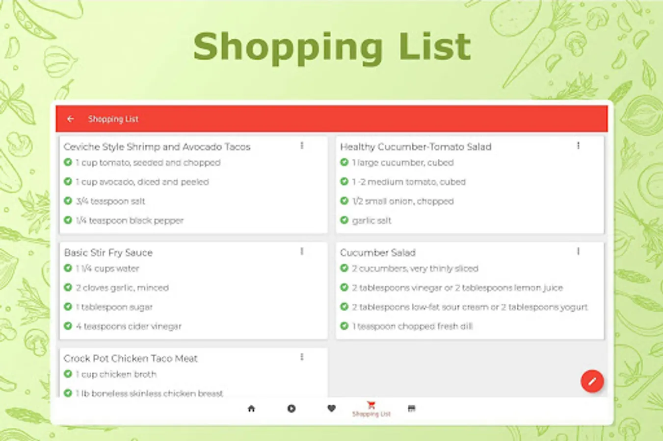 * Save your shopping list and access offline when doing the grocery