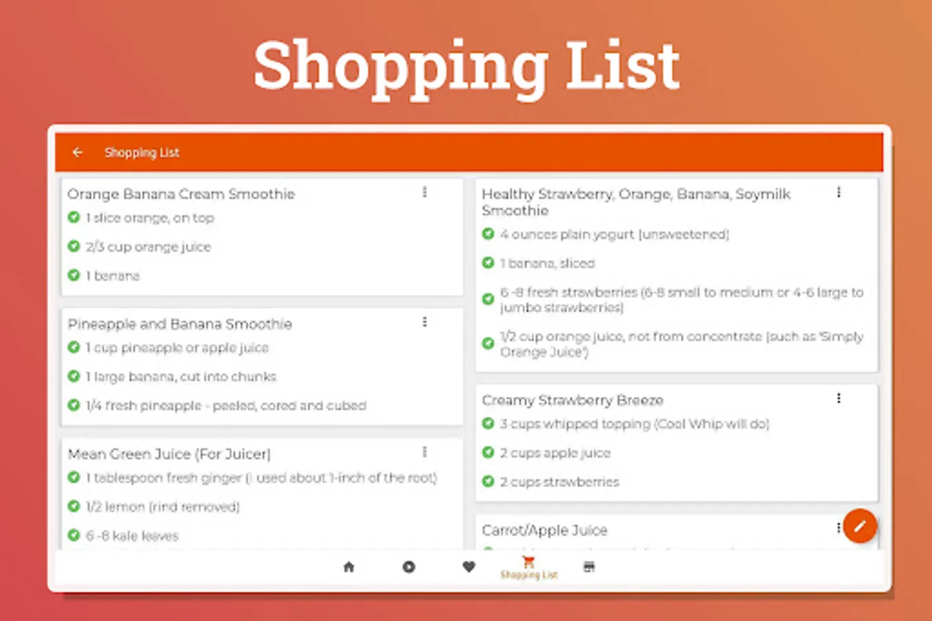 Juice recipes app let you collect all your favorite recipes and shopping list offline.