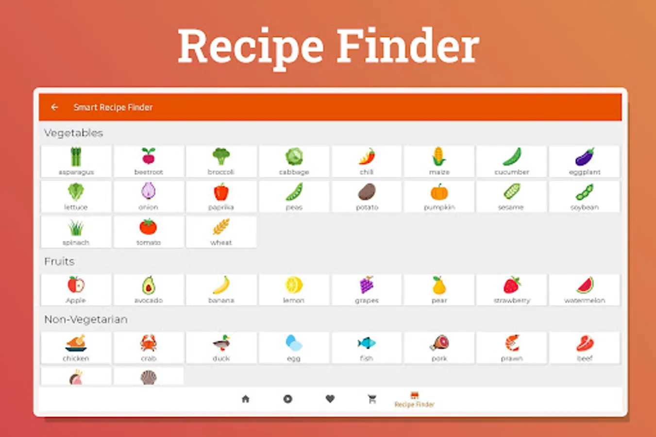 Make recipe-hunting faster by using the kitchen store feature! You can add up to five ingredients in the basket. Once you are done, hit "Find Recipes," and you will have tasty juices in front of you!
