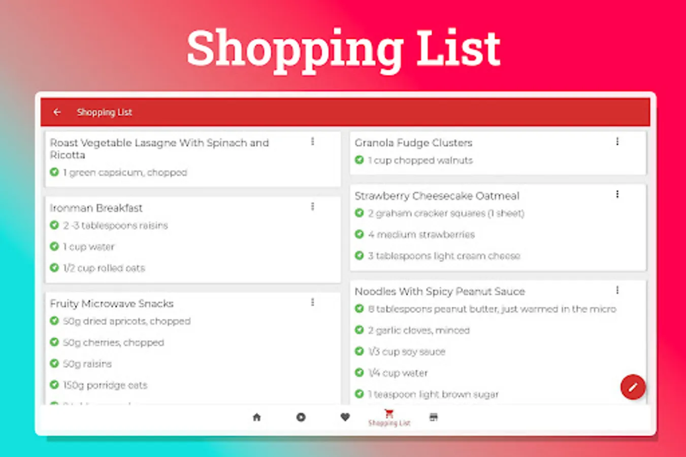 Microwave recipes app let you manage all your favorite recipes and shopping list offline.