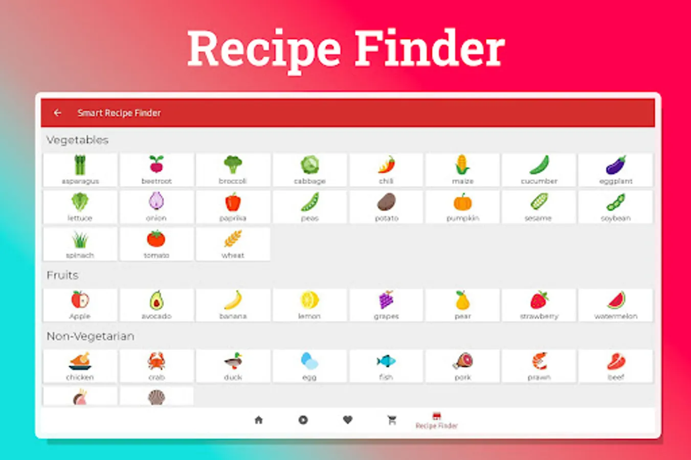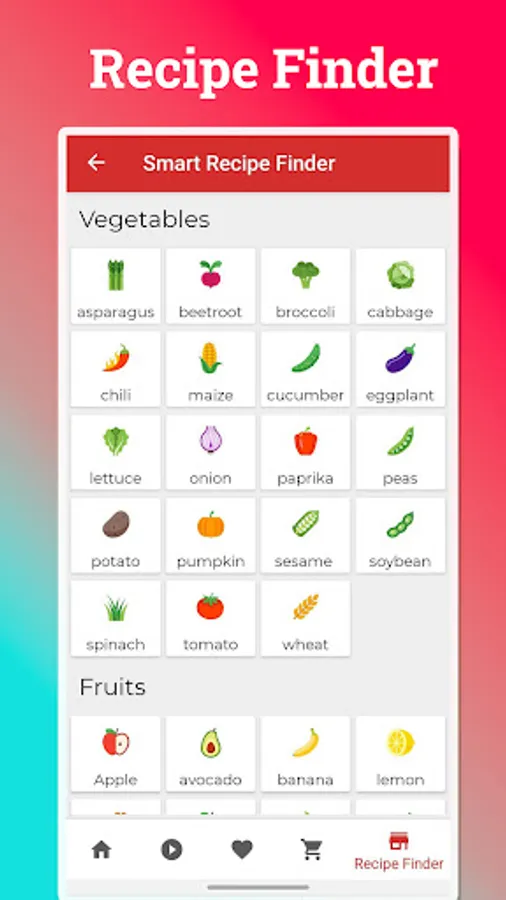 Make recipe-hunting faster by using the kitchen store feature! You can add up to five ingredients in the basket. Once you are done, hit "Find Recipes," and you will have tasty dishes in front of you!