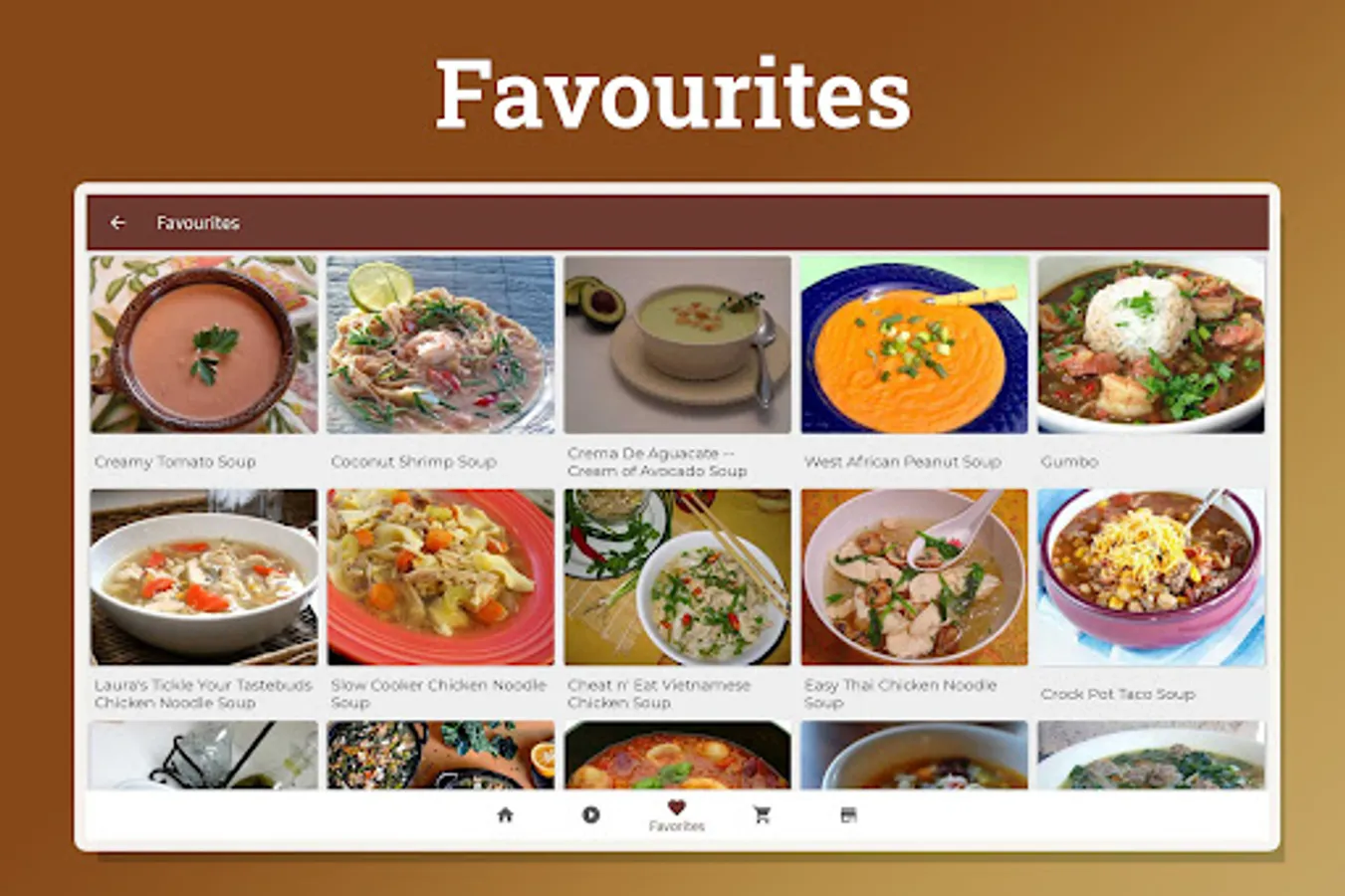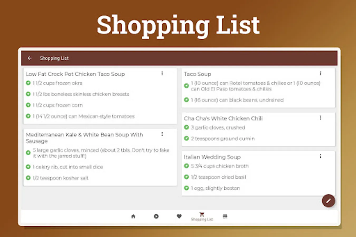 Soup recipes app let you manage all your favorite recipes and shopping list offline.