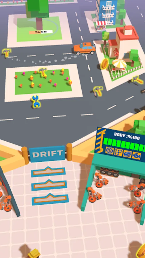 Flip theCar, collect body and mechanic objects and complete the your vehicle.